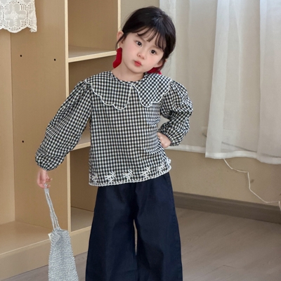 비다이어리.플리에체크블라우스