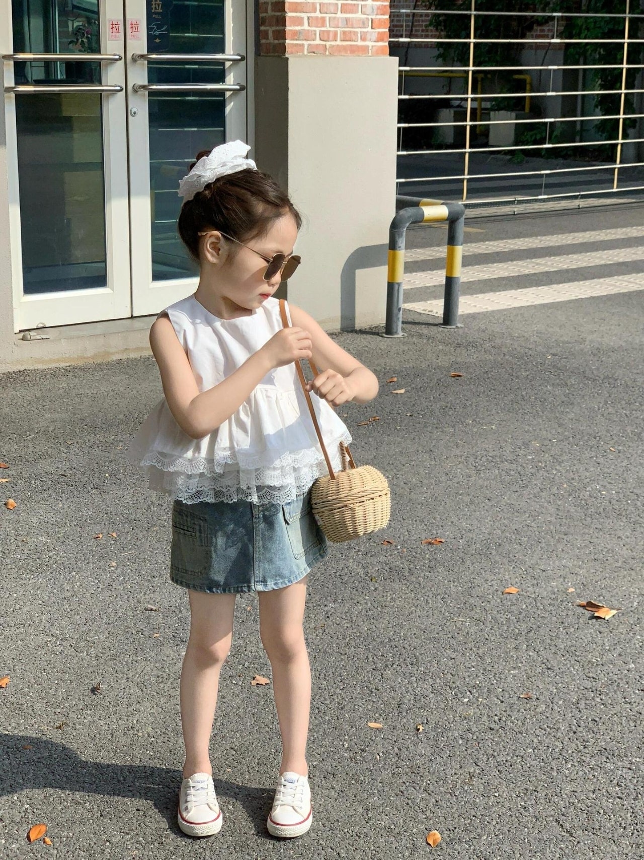 [수입]레이스민소매+데님스컷